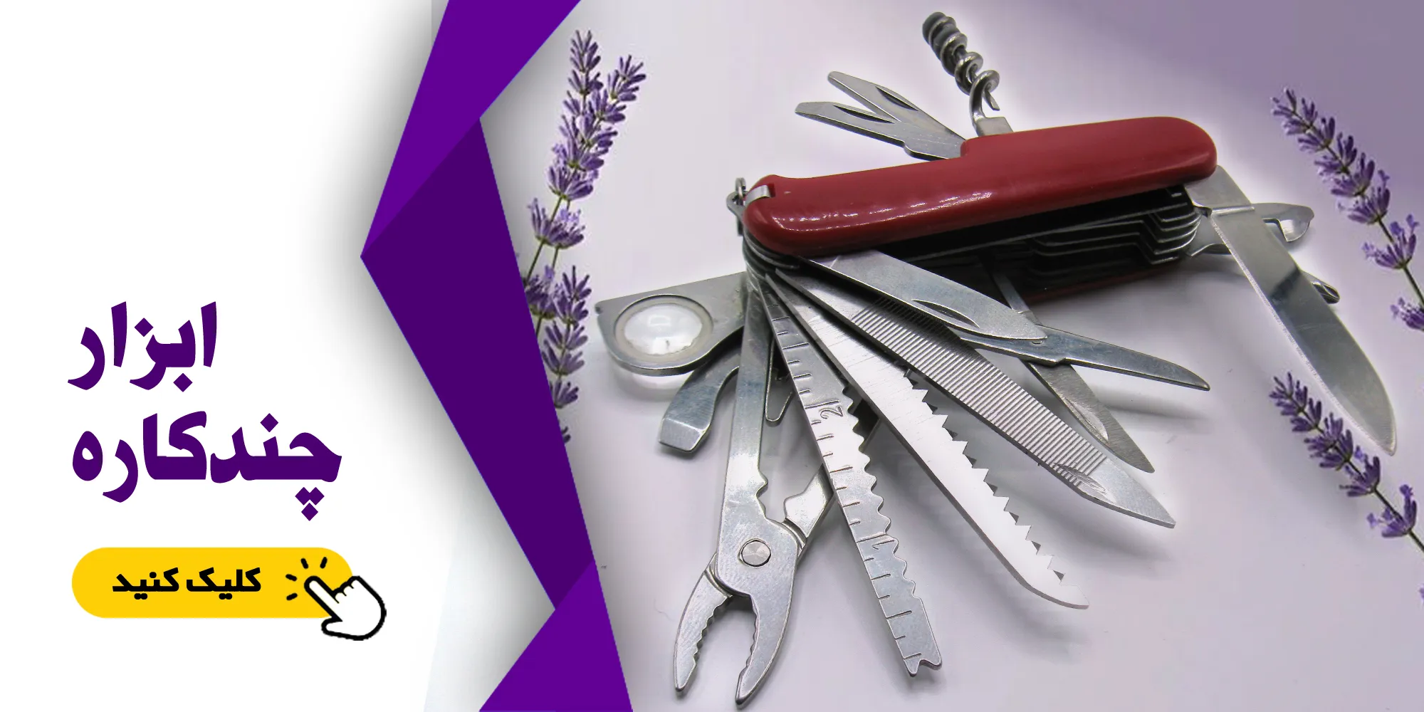 - شامل چاقو، دربازکن، قیچی کوچک و ابزارهای دیگر.