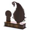 - این تندیس از ورقه های چوبی است که با دستگاه برش لیزر به شکل سنتی برش خورده است و یک پلاک مسی که روی آن هنر میناکاری به وسیله دست اجرا شده، تولید شده است.