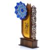 - جنس بدنه این تندیس تبلیغاتی میناکاری طرح وان یکاد از فیبر های نازک چوب است که با لیزر بصورت دقیق و خاص برش خورده و وزنی در حدود 250 گرم را دارا است