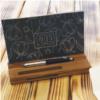 - . پایه چوبی ترمو وود . مقوای سوزنی 250 گرم . برگ اول متالایز نقره کوب . هولدر موبایل، جای خودکار، همراه با جعبه . با قابلیت نصب پلاک یا لیزر Co2 . سایز کلی تقویم 19×11/5 . سایز برگه ها 19×10/5