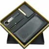 - ست چهار تکه شامل : کیف پول پالتویی چرم مصنوعی ترمو درجه یک، یک جاکارتی چرم و فلز طلایی، یک جاکلیدی طلایی و یک خودکار نفیس فلزی طلایی