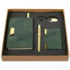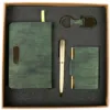 - ست مدیریتی چهار تکه شامل یک جاکلیدی چرم و فلز زیبا ، یک خودکار نفیس ، یک عدد دفترچه یادداشت و یک جاکارتی چرم و فلزی لاکچری که همگی در یک جعبه هاردباکس بسیار زیبا و شکیل بصورتی زیبا و چشم نواز چیدمان شده اند. امکان حک لیزر روی تمامی اقلام ذکر شده وجود دارد. رنگ این ست و پک مدیریتی به رنگ سبز خاص طرحدار است البته امکان تغییر رنگ در صورت وجود اقلام به رنگهای دیگر نیز وجود دارد.